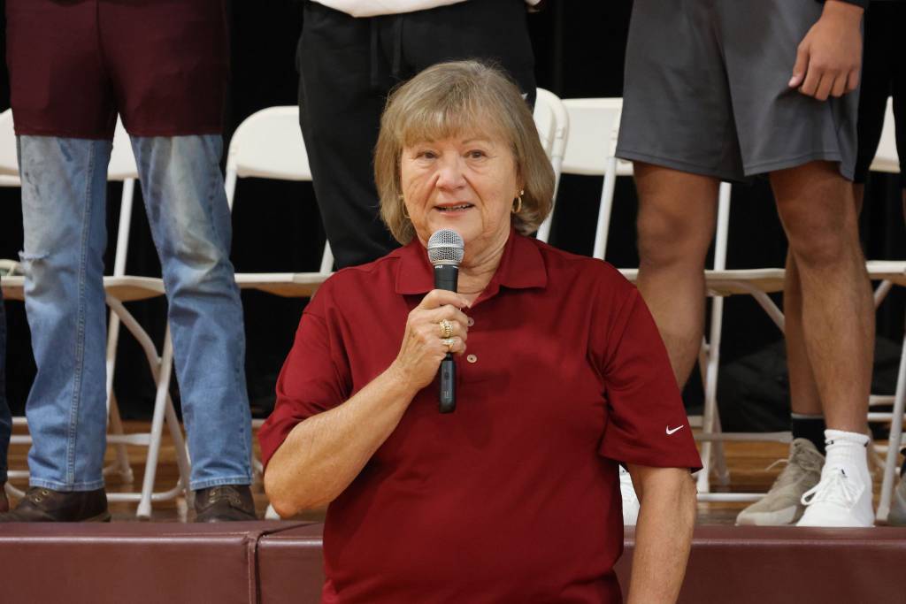 The dedication ceremony took place in front of a packed house, with fans, players, alumni, and community members filling the stands to celebrate Coach Griffin’s legacy. Surrounded by former players, fellow coaches, and supporters, she was presented with the honor to a standing ovation.